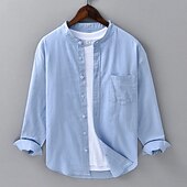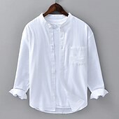More information about Men's Shirt Linen Shirt Band Collar Shirt Summer Shirt Beach Wear Solid Color Vacation Street White Blue Khaki Long Sleeve Mandarin Collar Summer Spring Clothing Apparel Pocket