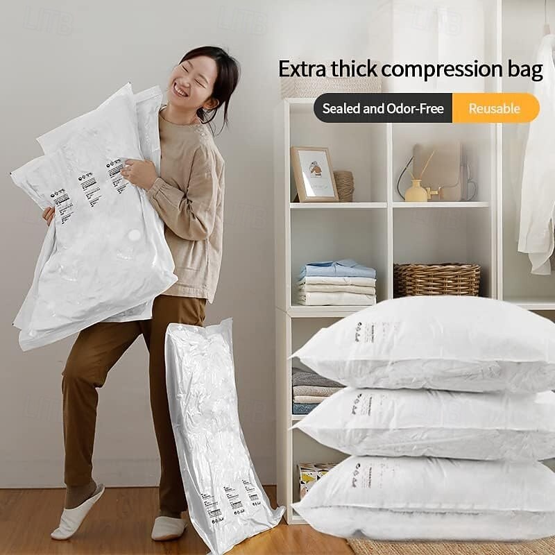 MXN $273 - 5 Pack Vacuum Compression Bag with with Hand Pump for Travel, Space Saving Vacuum Storage Sack, Travel Essentials Compression Bags, Vacuum Seal Bags for Clothes 2025. Shop for cheap Clothing & Closet Storage online? Buy at lightinthebox.com on sale today!