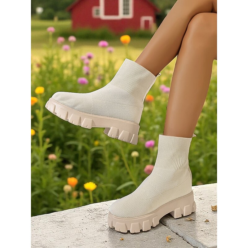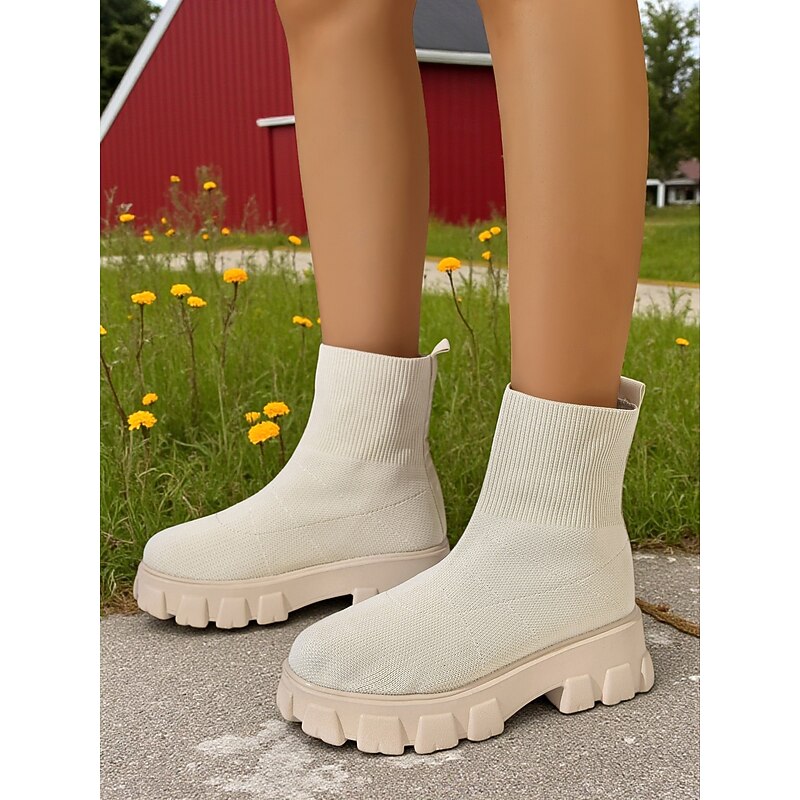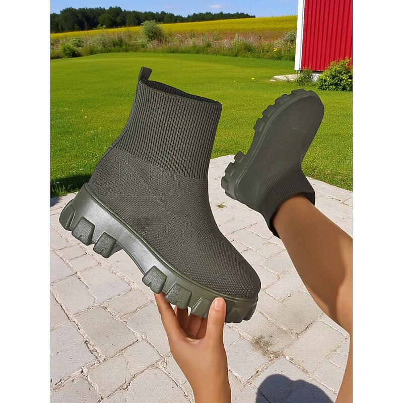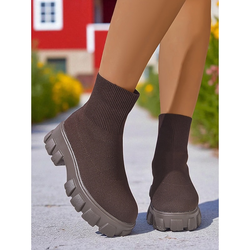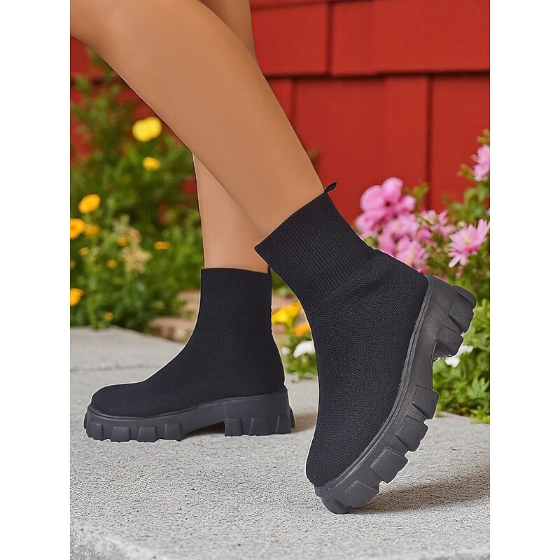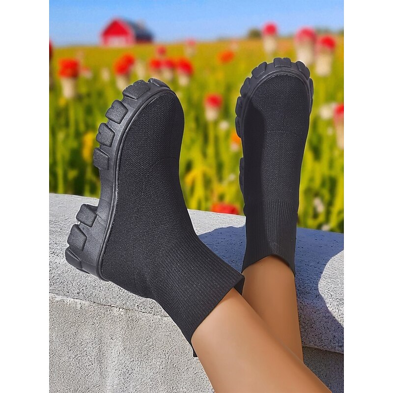 More information about Women's Black Sock Boots with Chunky Red Soles – Stylish Stretch Knit Ankle Boots for Streetwear, Autumn & Winter Outfits
