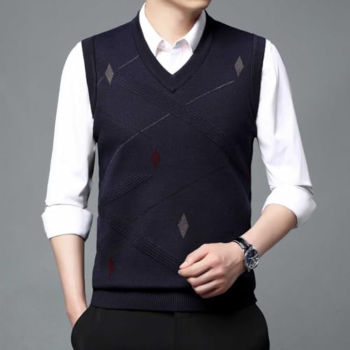 Sweater Vests for Men Business Casual Printed Knitted Sweaters Classic V-Neck Pullover Sleeveless Slim Fit Sweaters 4