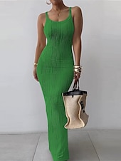 Highlights [Fabric] : This maxi dress is made from high-quality polyester, providing a comfortable and breathable wear for the summer season. The textured fabric adds depth and visual interest to the dress, while its micro-elasticity ensures a snug yet flexible fit. [Fit] : Designed with a body-hugging silhouette, this dress accentuates the wearer’s figure, offering a flattering and elongated look thanks to its maxi length. The regular fit ensures comfort and easy movement for various occasions. [Design Highlights] : The dress features a chic backless design with delicate spaghetti straps that lend an elegant and modern touch. The scoop neckline is simple yet versatile, suitable for both casual and formal settings. [Occasions] : Perfect for dates, vacations, street outings, and holidays, this dress is versatile enough to suit a wide range of settings. Pair it with minimal jewelry and a stylish woven handbag for a sophisticated, contemporary look. [Size Options] : Available in a range of sizes from S to 2XL, catering to various body types and ensuring a perfect fit for everyone. Available colors include Green, White, Pink, and Light Grey, offering versatile styling options.