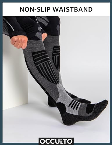 • MATERIAL PROPERTIES: Our ski socks for men (model: Felix) are made of a synthetic fiber mix with a high acrylic content as well as polyamide and elastane. Acrylic fibers are particularly light and keep you pleasantly warm, but are significantly more resilient than most natural fibers and are therefore often used as a substitute for wool. In connection with breathable polyamide, the most important material properties are combined. Elastane makes the fabric stretchy and ensures a comfortable fit.