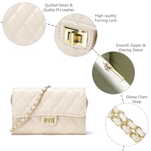 Origin: ImportedSTYLISH & FUNCTIONAL-Small trendy crossbody purse features a classic quilted exterior design with soft vegan leather, gold leather crossbody chain strap and front flap with twist lock closure. Great for daily use for work or chic enough for going out to a party or other occasion.COMPACT & SPACIOUS DESIGN-Dimensions: 7.6L x 1.7W x 4.9H. The small crossbody bag with sufficient space is ideal when carrying your small limited amount of items such as a small wallet, smartphone, keys and makeup accessories, etc. Perfect purse size for keeping your everyday essentials organized.STRUCTURE OF BUCKLE FLAP BAG: The quilted shoulder purse features 2 main compartment, 1 zipper pocket, 4 card pocket and 1 note compartment. Structured main compartment with interior sections provides organized, easy-to-find storage.TRENDY & FASHIONABLE CROSSBODY BAGS: The mini ladies square shoulder bag is trendy, unique and full of high-end sense. Classic quilted design is matched with noble hardware, bring out stylish and elegant style of the womens purses. Practical fashion crossbody purses, perfect for daily, travel, city, shopping, evening or party use.Gift Choice: This women shoulder bag is the perfect gift for families, wives, friends, parents on any significant moments like Christmas, Valentines, anniversary, birthday, festivals, Mother's Day, celebration day Perfect for everyday use. High quality materials and excellent craftsmanship ensure long-lasting durability.