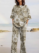 More information about Women's Active Fashion Pants Sets 3/4 Length Sleeve Crew Neck Floral Print Vacation Daily Holiday Green Summer Regular Fit