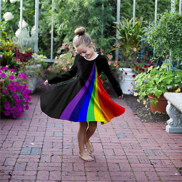 More information about Kids Little Girls' Dress Rainbow A Line Dress Daily Holiday Vacation Print Black Above Knee Long Sleeve Cute Casual Sweet Dresses Fall Winter Regular Fit 3-10 Years