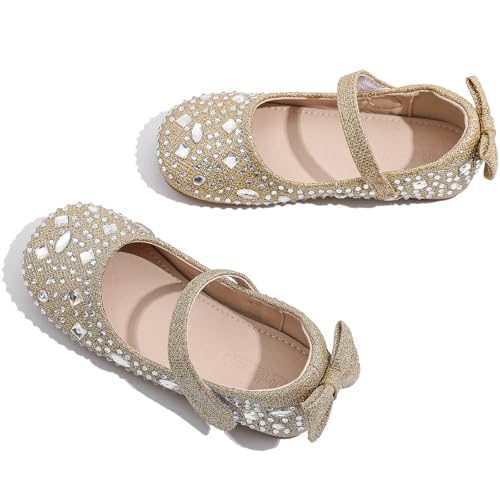 WUIWUIYU Toddler Girls Ballet Flats Shoes Ballerina Bowknot Glittery Rhinestone Mary Jane Princess Dress Shoe for Wedding Party School Birthday 4