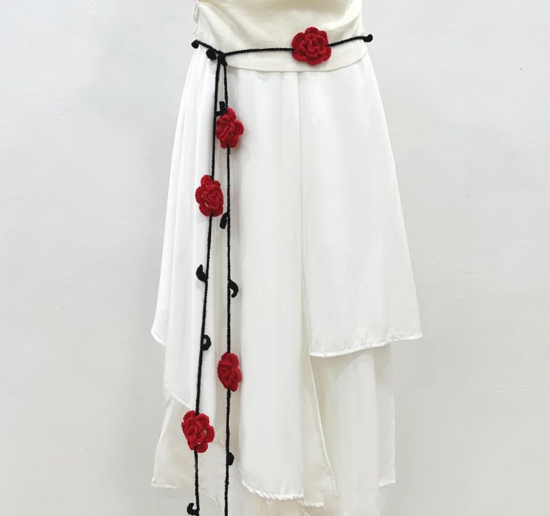 More information about Crochet Rose Flower Neck Scarf Long Skinny Knitted Choker Necklace Neckwear Decoration Vintage Neckerchief Waist Belt