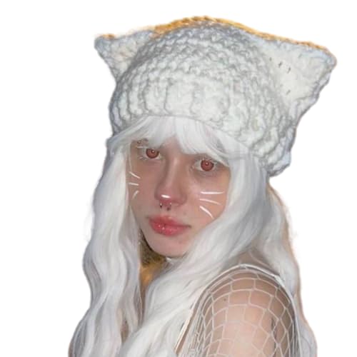Cartoon Kitten Hat Girls Headgear for Outdoors Activities Skiing with Ears Crocheted for Skiing Camping White 6