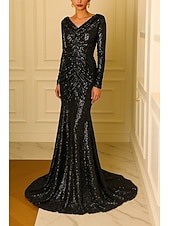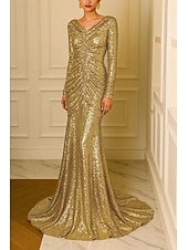 $169.99 - Gold Stretch Sequin Mermaid / Trumpet Evening Gown Elegant Formal Dress Formal Wedding Sweep / Brush Train Long Sleeve V Neck with Ruched 2025 2025. Shop for cheap Mermaid Evening Dresses online? Buy at lightinthebox.com on sale today!