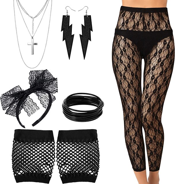 1980s Gloves Necklace Leggings 80's Party Girl Fancy Dress Women's Masquerade Party / Evening Pride Parade Pride Month Adults' 1 Bracelet Pants Gloves All Seasons 6