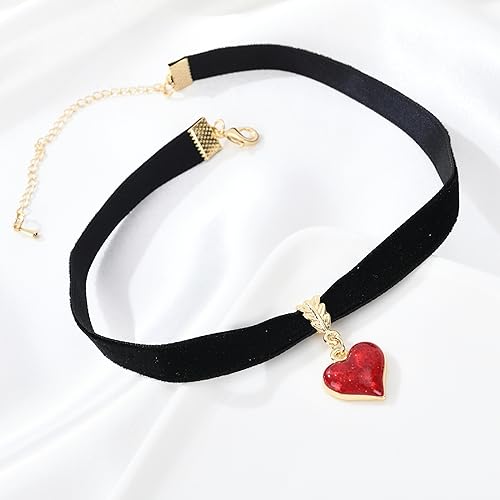 HOT ! Vintage Black Choker Necklace for Women, Velvet Drip oil Red Heart Black Choker, Valentines Day Halloween Cosplay Party Jewelry, Adjustable Length from 10-14 Inches