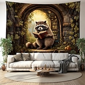 HOT ! Raccoon Animal Reading Hanging Tapestry Wall Art Large Tapestry Mural Decor Photograph Backdrop Blanket Curtain Home Bedroom Living Room Decoration