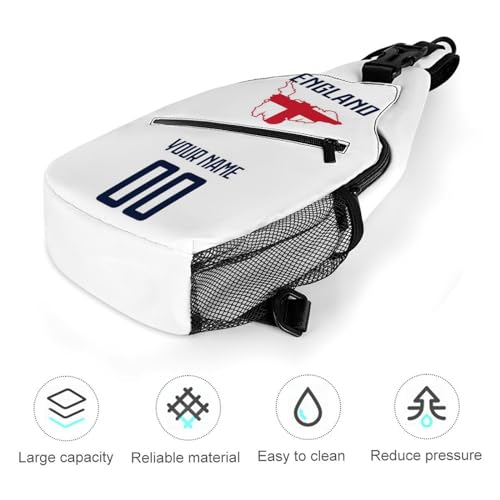 Custom England Sling Bag,Soccer Chest Bag,Personalized Any Name Number Crossbody Backpack,Cycling Travel Daypack For Men Women 4
