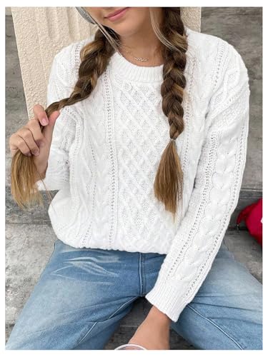 HOT ! SHENHE Girl's Cable Knit Sweater Oversized Crew Neck Long Sleeve Fall Knit Sweater Pullover