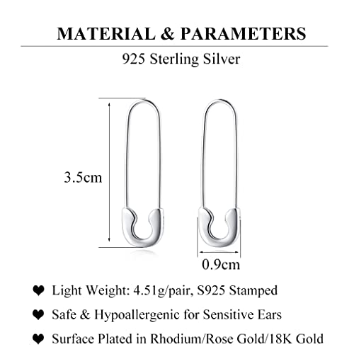 HOT ! SLUYNZ Solid 925 Sterling Silver Safety Pin Hoop Earrings for Women Minimalist 1.4" Hoop Earrings Dangle