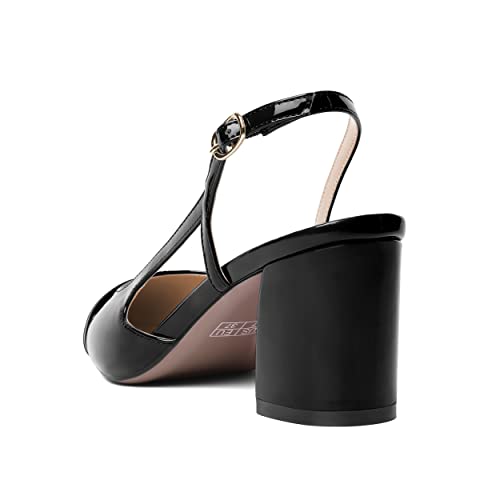 ROSERWISH Womens Two Toned Casual Party Patent Slingback Pointed Toe Wedding Chunky Mid Heel Pumps Dress Shoes 2.5 Inch 3