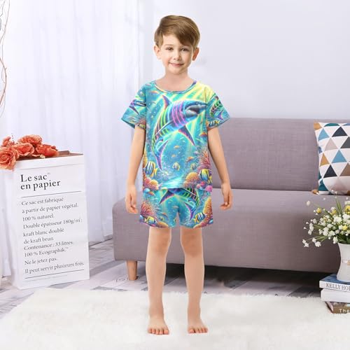 Shark Tropical Fish Pajama Set Short Sleeve Pajamas Shorts Sets Cotton gentle Loungewear Sleepwear 5Y