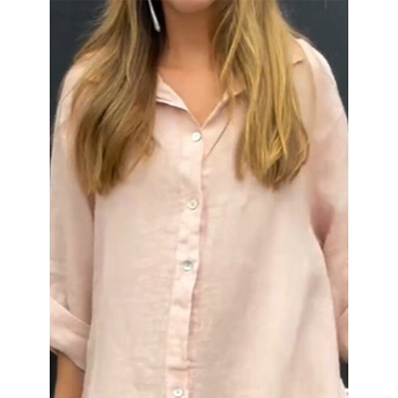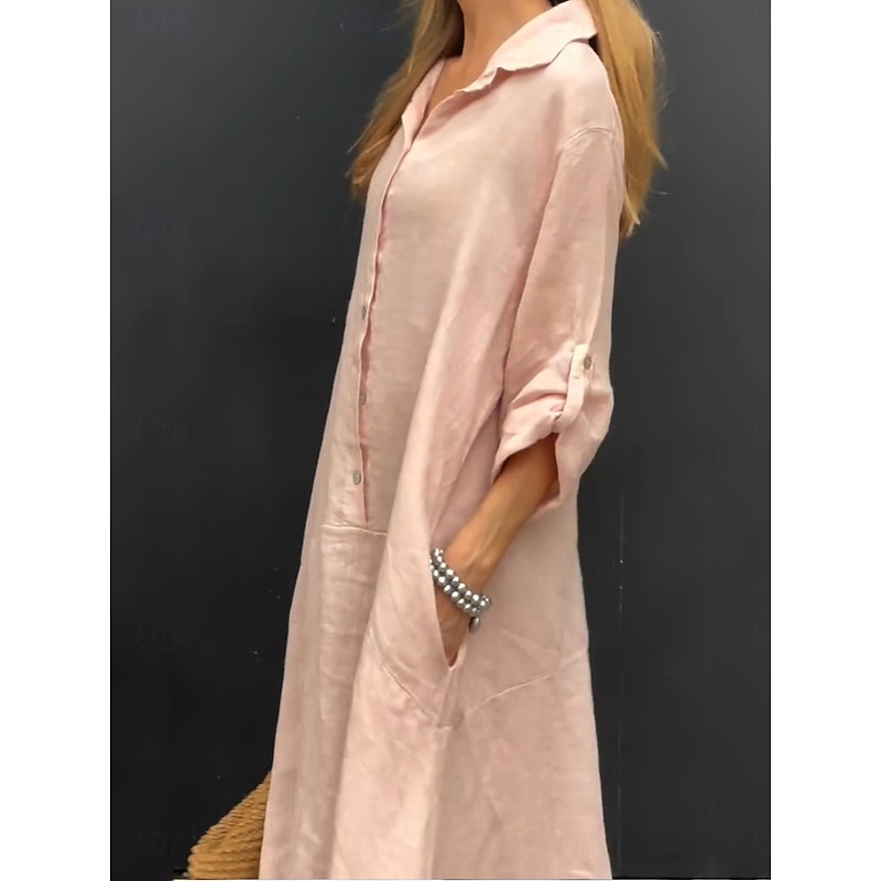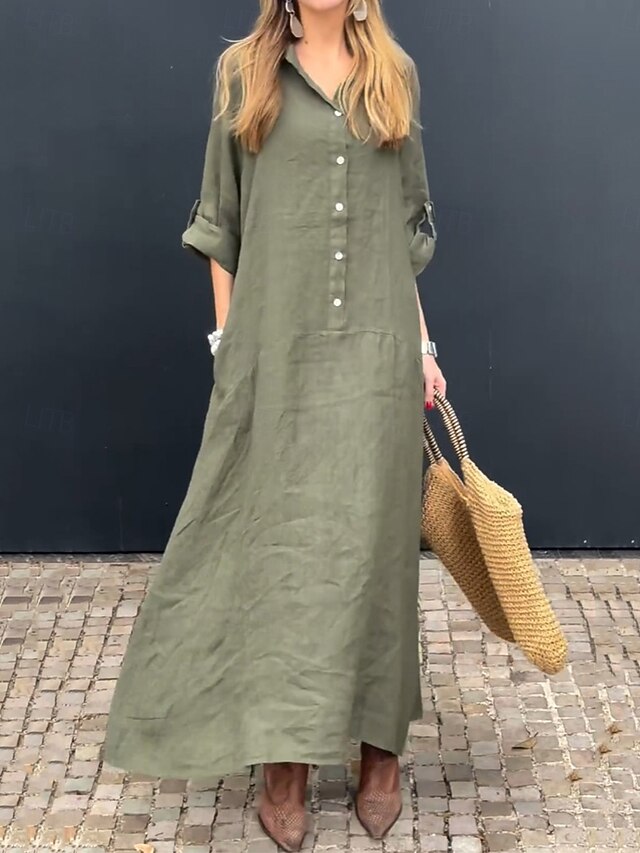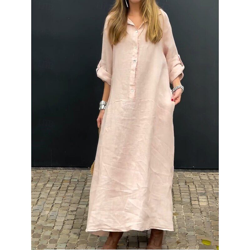 More information about Women's Maxi Dress Cotton Linen Dresses Casual Dress Basic Casual Vacation Daily Regular Fit Plain Long Sleeve Shirt Collar Pink Green Gray Spring Fall