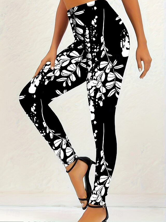 More information about Women's Leggings Vacation Vintage Fashion Full Length High Waist Floral Graphic Printing Thermal Warm Soft Breathable High Elasticity Vacation Street Casual Black and White Spring Fall Winter Slim Fit
