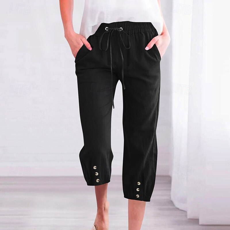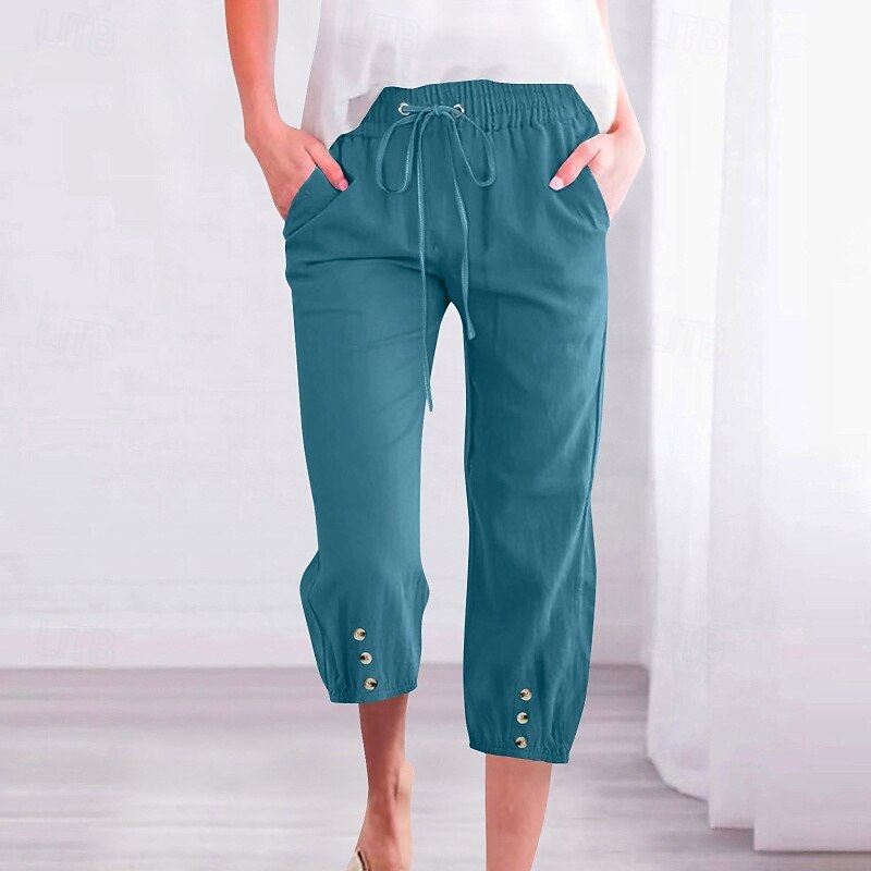 HOT ! Women's Capri Pants Cotton Linen Pants Slacks Streetwear Casual Calf-Length High Waist Natural Plain Pocket Elastic Drawstring Design Breathability Soft Comfortable Micro-elastic Vacation Street