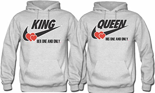 King Queen Sweatshirt Hoodie- Pullover Couples Matching Valentine's Love Hood 6