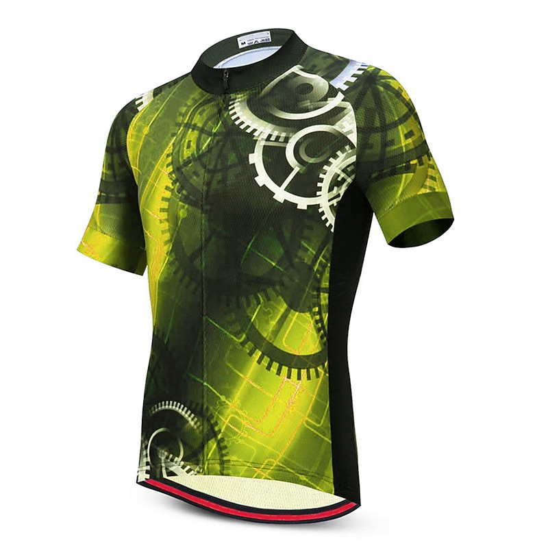 Men's Cycling Jersey Geometric Gear Funny Short Sleeve Bike Jersey Top with 3 Rear Pockets Mountain Bike MTB Road Bike Cycling Quick Dry Reflective Strips Back Pocket Moisture Wicking Sports Red Blue 10