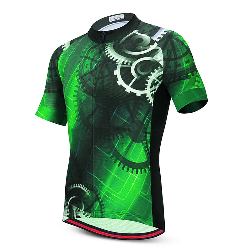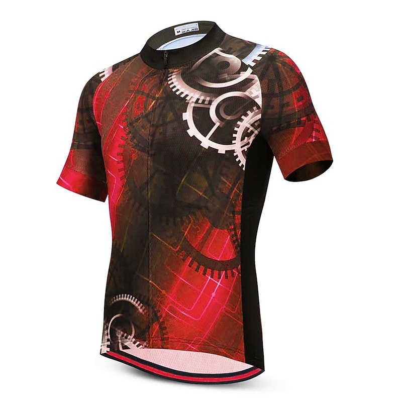 Men's Cycling Jersey Geometric Gear Funny Short Sleeve Bike Jersey Top with 3 Rear Pockets Mountain Bike MTB Road Bike Cycling Quick Dry Reflective Strips Back Pocket Moisture Wicking Sports Red Blue 13