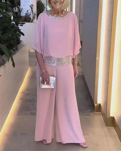 • 【Feature】:Two Pieces mother of bride pants suit, Casual style, Two-Piece suit, Crew neck, Sequin color block , 3/4 Batwing sleeves, Cold Shoulder, Flowy Wide Leg, Pant suits for women dressy, Loose, Soft, Stretchy. Two Pieces mother of bride pants suit, elegant mother sets, floor length.