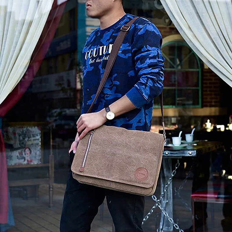 Men's Canvas Messenger Bag - Stylish and Durable Crossbody Bag with Multiple Pockets for Everyday Use 6
