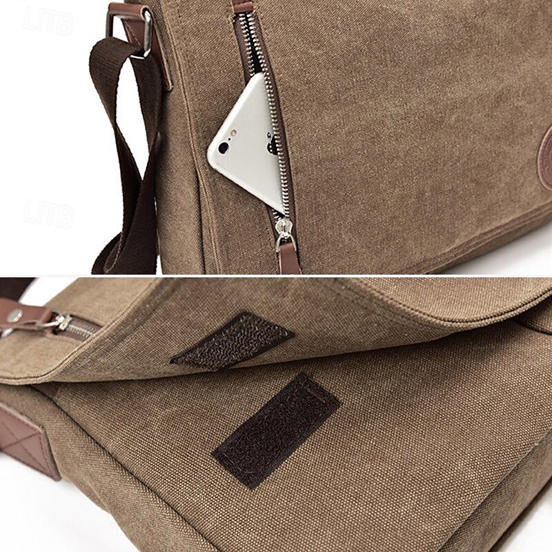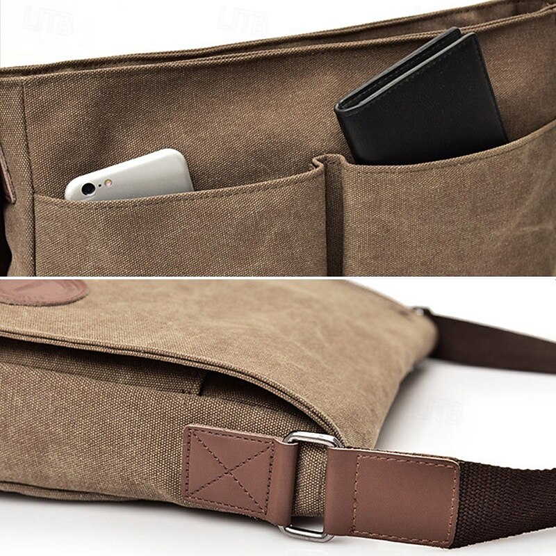 Men's Canvas Messenger Bag - Stylish and Durable Crossbody Bag with Multiple Pockets for Everyday Use 12