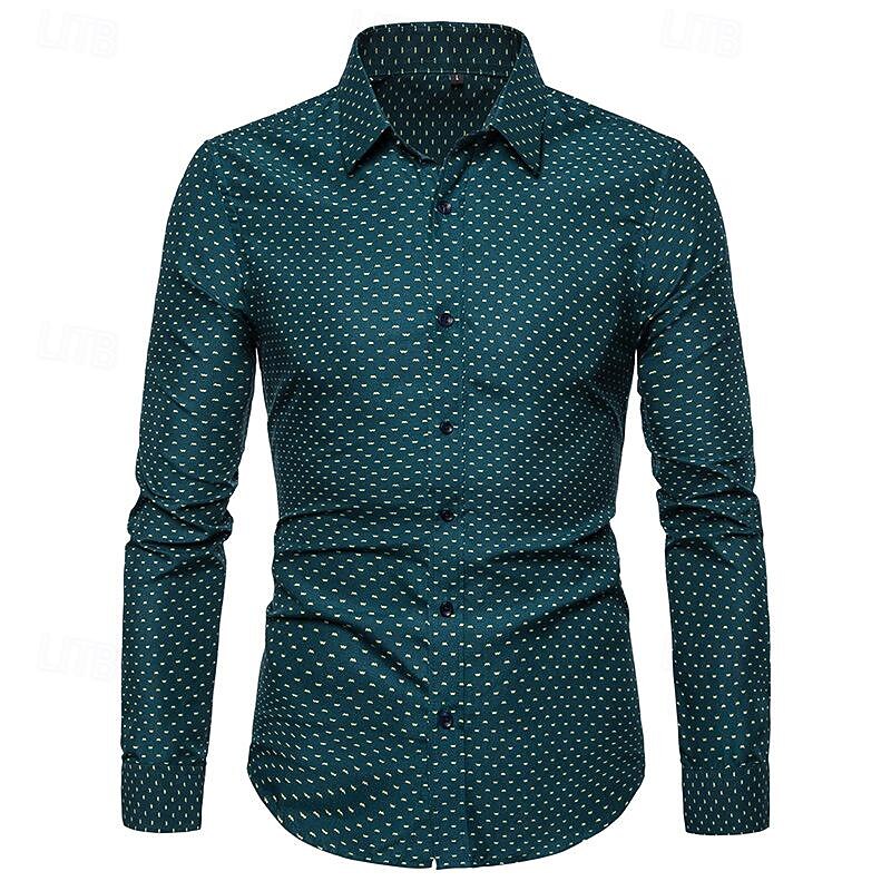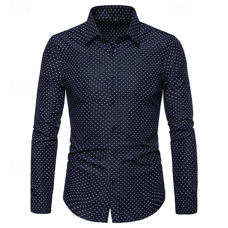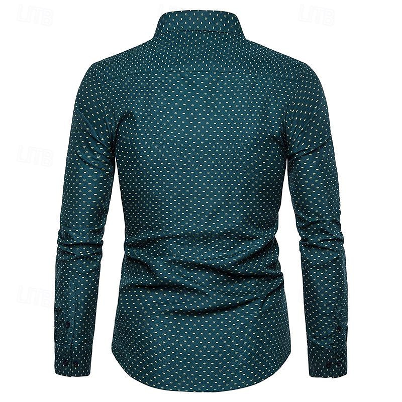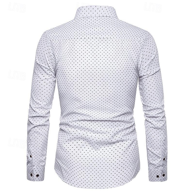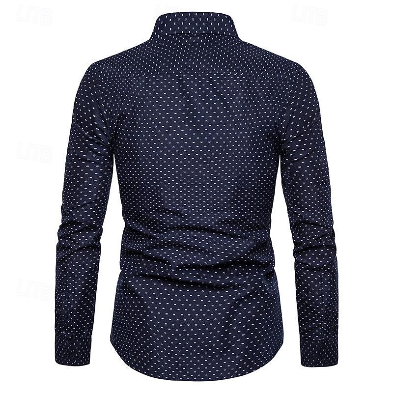 Highlights - Long sleeve men's shirt - Classic, formal, and elegant style - Perfect for weddings or daily wear - Features a polka dot pattern and turndown neckline