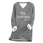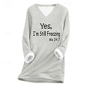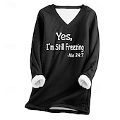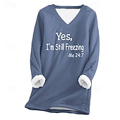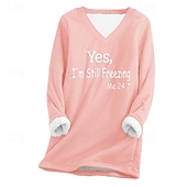 More information about Women's Fleece Lined Pullover Sweatshirt Pajamas Pullover Sweatshirt Yes Im Cold Letter Streetwear Casual Long Sleeve V Neck Regular Tops Home Street Holiday Print Black Pink Navy Blue Light Grey