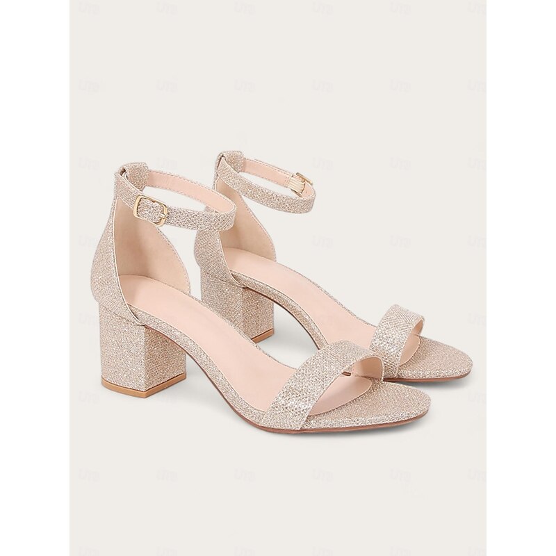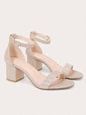 : Crafted with high-quality faux leather, sparkling glitter, and faux suede, these women's sandals offer a luxurious feel and durability, perfect for making a statement. The block heel and round toe design ensure both comfort and style, making them ideal for all-day wear.
