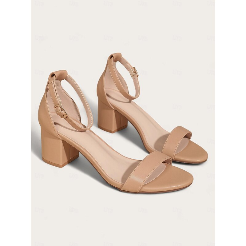 : These elegant nude ankle strap heeled sandals boast a sleek, modern silhouette that pairs effortlessly with a variety of outfits. The chunky heel adds stability and elevates the overall look, perfect for dressing up or down.