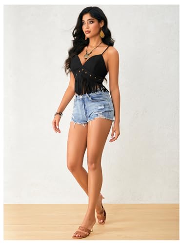 More information about OYOANGLE Women's Y2K Fringe Sleeveless Spaghetti Strap Faux Suede Vintage Hippie Crop Top Blouse