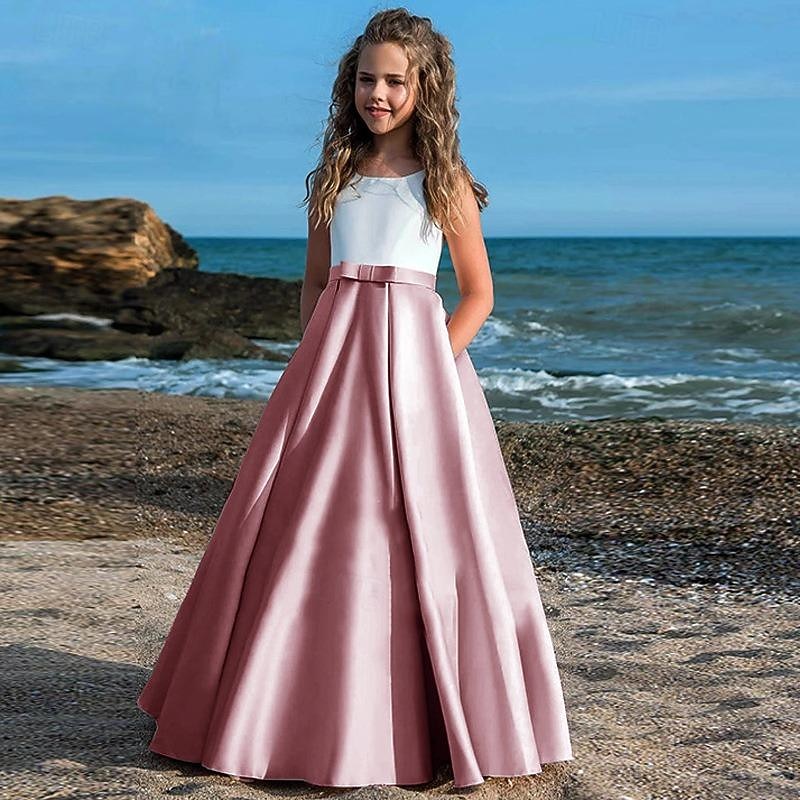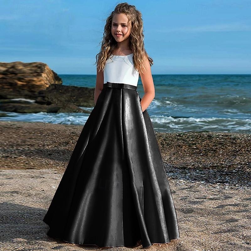 More information about Kids Girls' Party Dress Solid Color Sleeveless Performance Mesh Princess Sweet Mesh Mid-Calf Sheath Dress Tulle Dress Summer Spring Fall 2-12 Years Black White Champagne