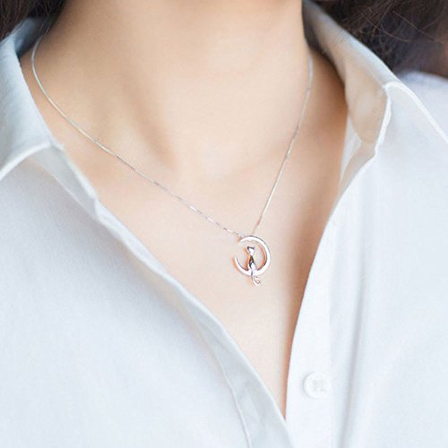 More information about 925 Sterling Silver Moon Cat Necklace Cat Pendant Necklace