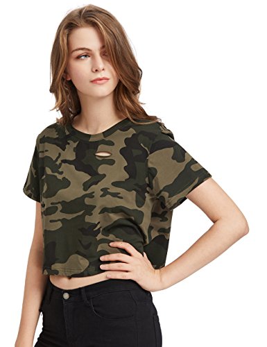 More information about SweatyRocks Women's Short Sleeve Distressed Crop T-Shirt Summer Tops