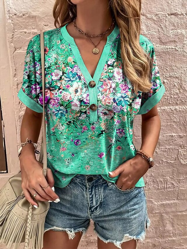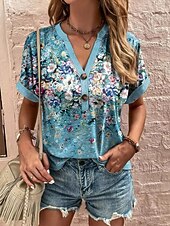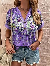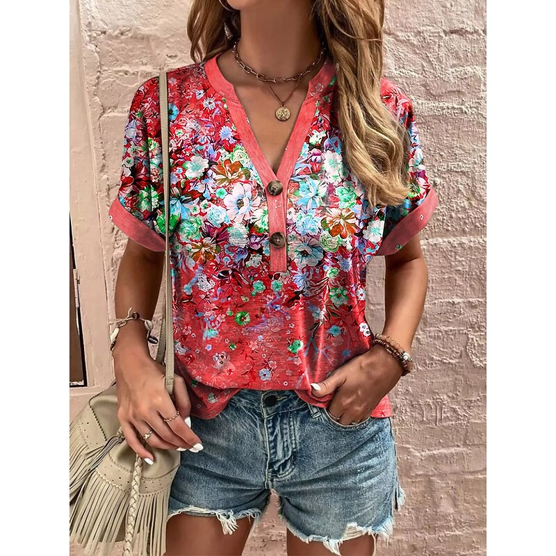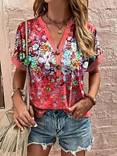 More information about Women's T Shirt Floral Graphic Plants Vintage Stylish Classic Short Sleeve V Neck Notched Neck Regular Tops Daily Going out Weekend Print Red Blue Purple Orange Green Summer Spring