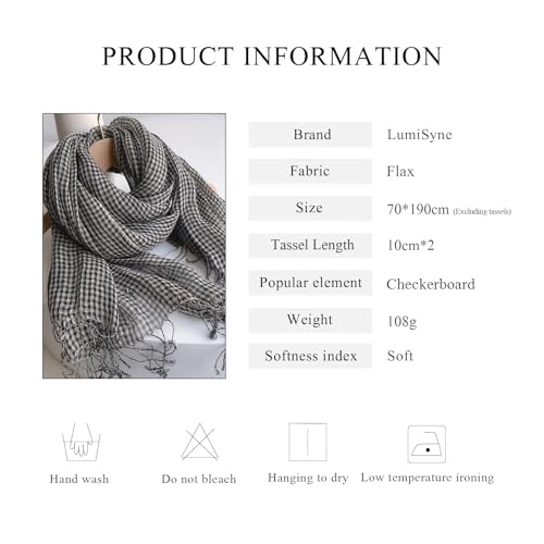 • FASHION STYLE: Classic plaid and striped elements bring stylish vibrancy to the scarf. The premium linen primary color takes on a vintage and nostalgic tone. The calm and intellectual color matching with vivid and clear woven texture is elegant and literary. The natural wrinkled texture is casual and rustic. The tassel design is not only a smart embellishment, but also ensures that the lock edge is firm and not easy to fall off.