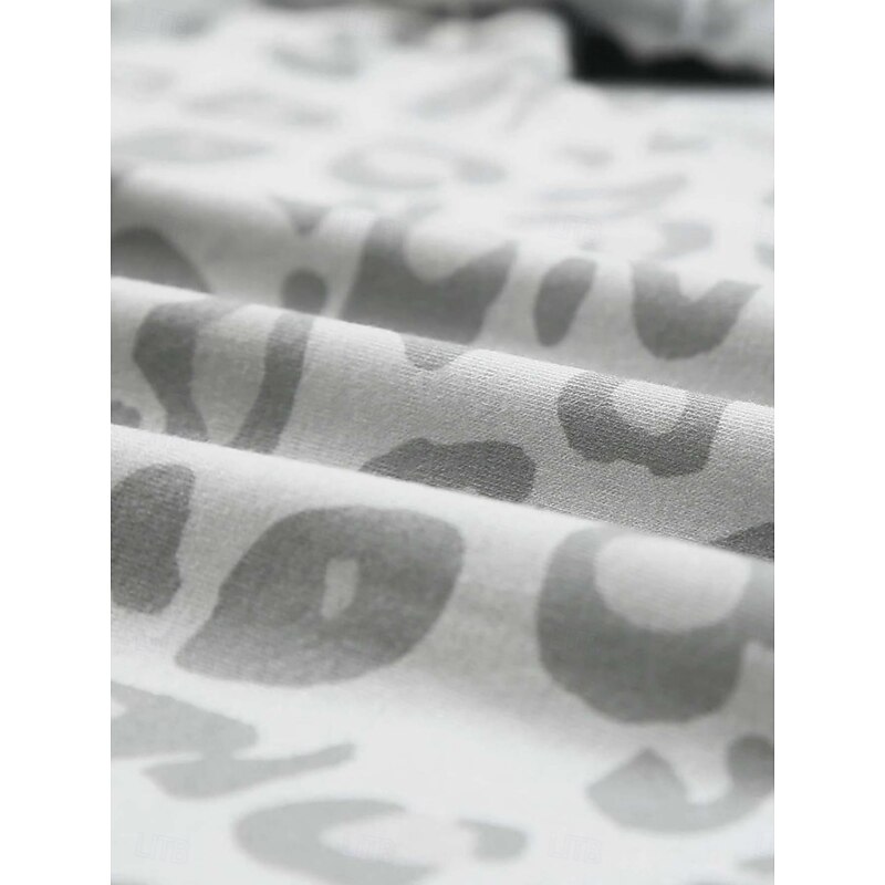 Women's Pajama Set Casual Comfort Leopard Elastic Waist T Shirt Pant Home Daily Long Sleeve V Neck Pink Blue Gray Summer Spring Fall Regular Fit 1