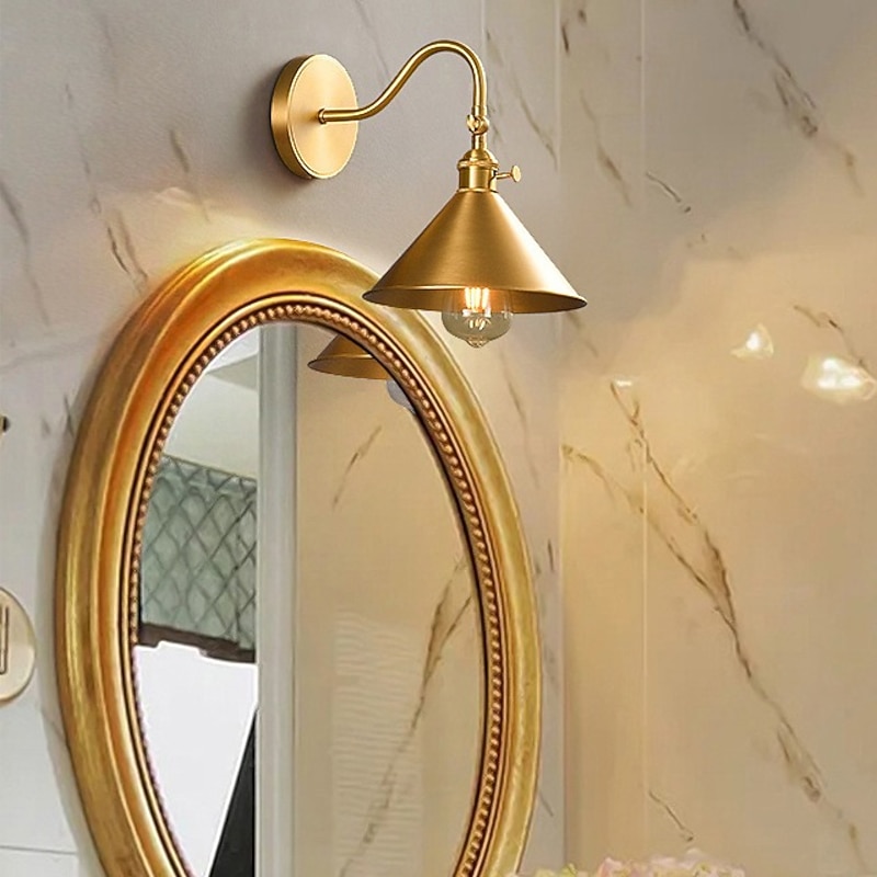 Gold Hardware Rust Proof Light Fixtures,Industrial Retro Style Gooseneck Wall Lamp,American Minimalist Indoor Sconces Lamp,for Living Room, Bedroom Wall Lantern 110-240V 6