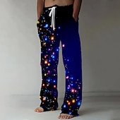 New Year Men's Sparkly Glittery Pants Trousers Mid Waist Drawstring Elastic Waist Hawaiian Casual Outdoor Party Evening Wear Holiday Straight Leg Trousers Summer Spring Fall 3D Print Blue 1