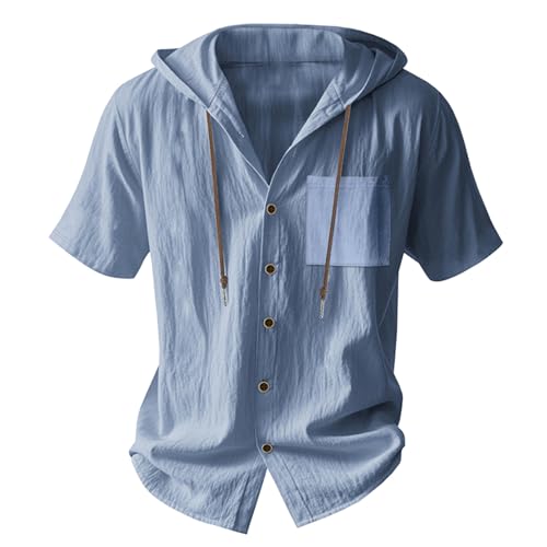 More information about Mens Cotton Linen Hoodies Short Sleeve Button Down Shirts Casual Hawaiian Beach Yoga Drawstring Pullover Sweatshirts
