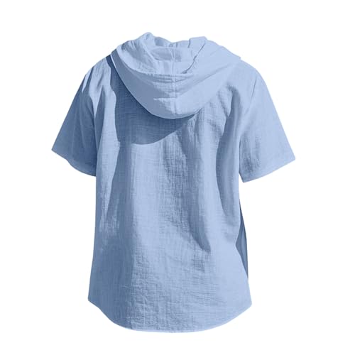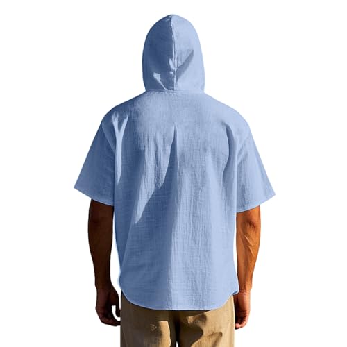 Mens Cotton Linen Hoodies Short Sleeve Button Down Shirts Casual Hawaiian Beach Yoga Drawstring Pullover Sweatshirts 5