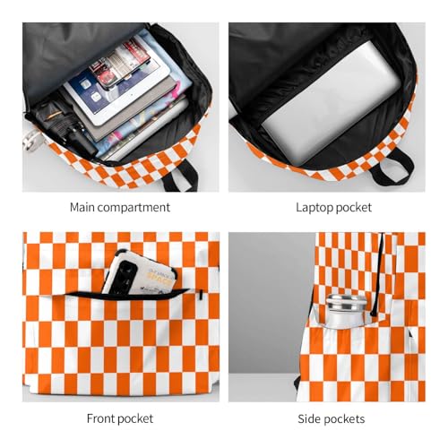 Orange White Checkered Flag 15 Inch Backpack for Men Women Adjustable Laptop Backpacks Shoulder Bag for Travel Hiking Outdoor 7