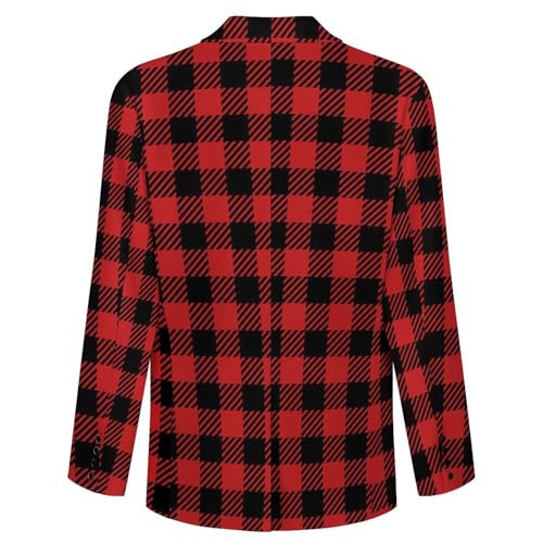 Red and Black Lumberjack Buffalo Plaid Men's Two Button Suit Jacket Sports Coat Novelty Casual Outwear Tops Funny 3