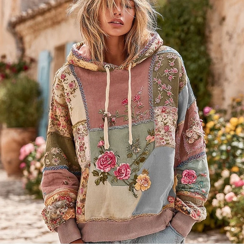 More information about Women's 3D Print Vintage Boho Hoodie Patchwork Hoodie Sweatshirt Floral Pullover Sweatshirt Oversized Long Sleeve Casual Warm Active Hooded Street Dailywear Dark Blue Purple Green Spring Fall Winter