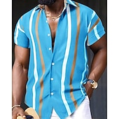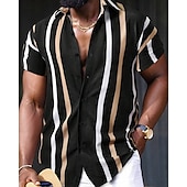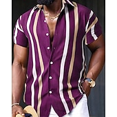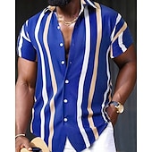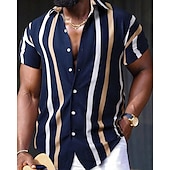 More information about Men's Shirt Summer Shirt Casual Shirt Beach Shirt Button Up Shirt Black Red Navy Blue Royal Blue Blue Short Sleeve Striped Lapel Vacation Hawaiian Buttons Clothing Apparel Polyester Fashion Casual