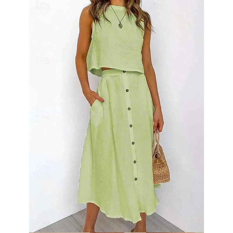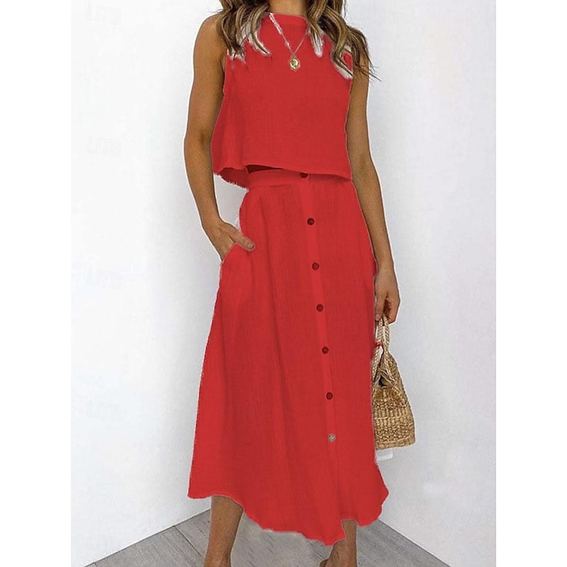More information about Women's Skirt A Line Basic Casual Maxi High Waist Skirts Solid Colored Pocket Casual Daily Weekend White Yellow Pink Red Summer Cotton